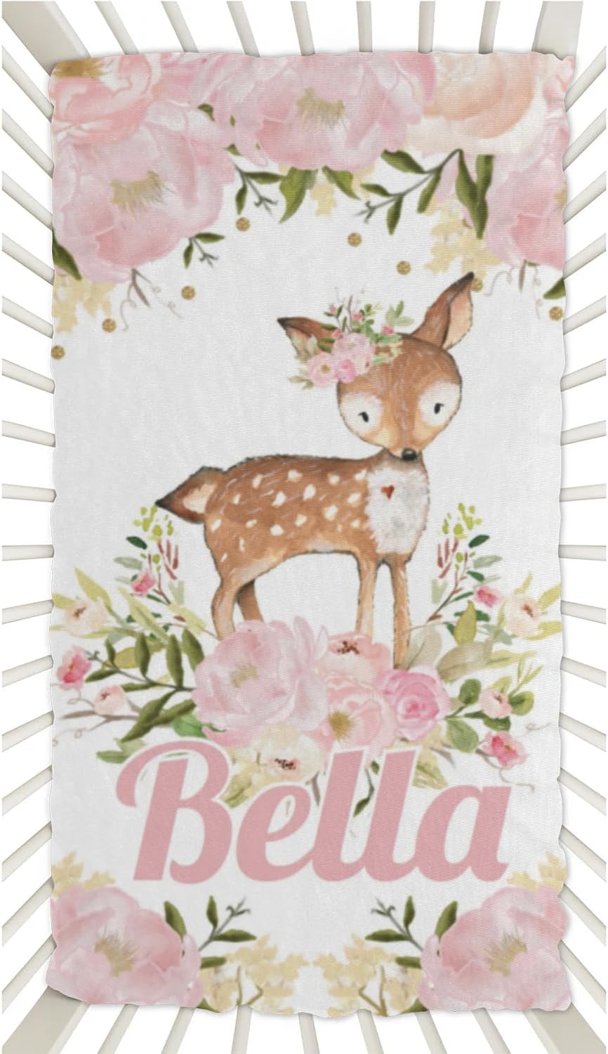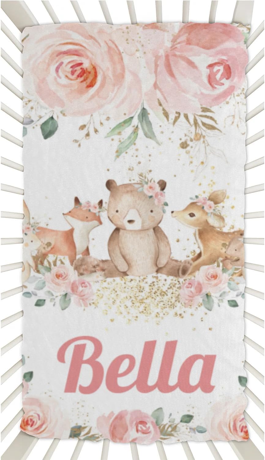 ♥Material and Size: Princess crib sheet made of microfiber which is luxuriously soft, breathable and safe. Size is 52L x 28W x 8H inches, suitable for standard baby mattress.♥Personalized Gift: Mini crib sheets with name is the perfect gift for baby, new mom, newborn on birthday Mother's Day, Christmas.
