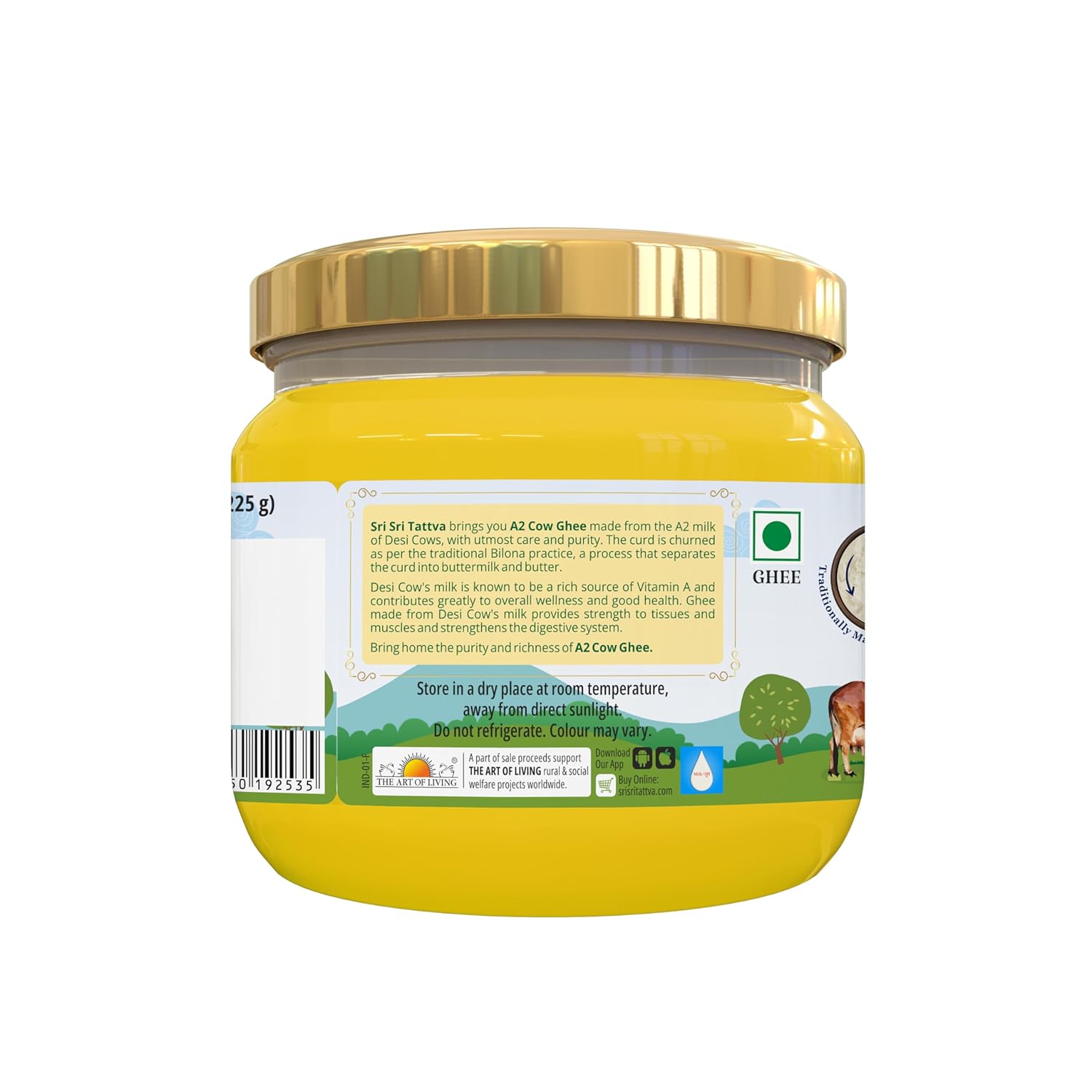 Sri Sri Tattva brings you Pure Desi Ghee made from the milk of A2 milk of Desi Cows, with utmost care and purity. Desi Cow’s milk is known to be a rich source of Vitamin A which contributes to overall wellness and good health. Ghee made from Desi Cow’s milk provides strength to tissues and muscles and strengthens the digestive system.